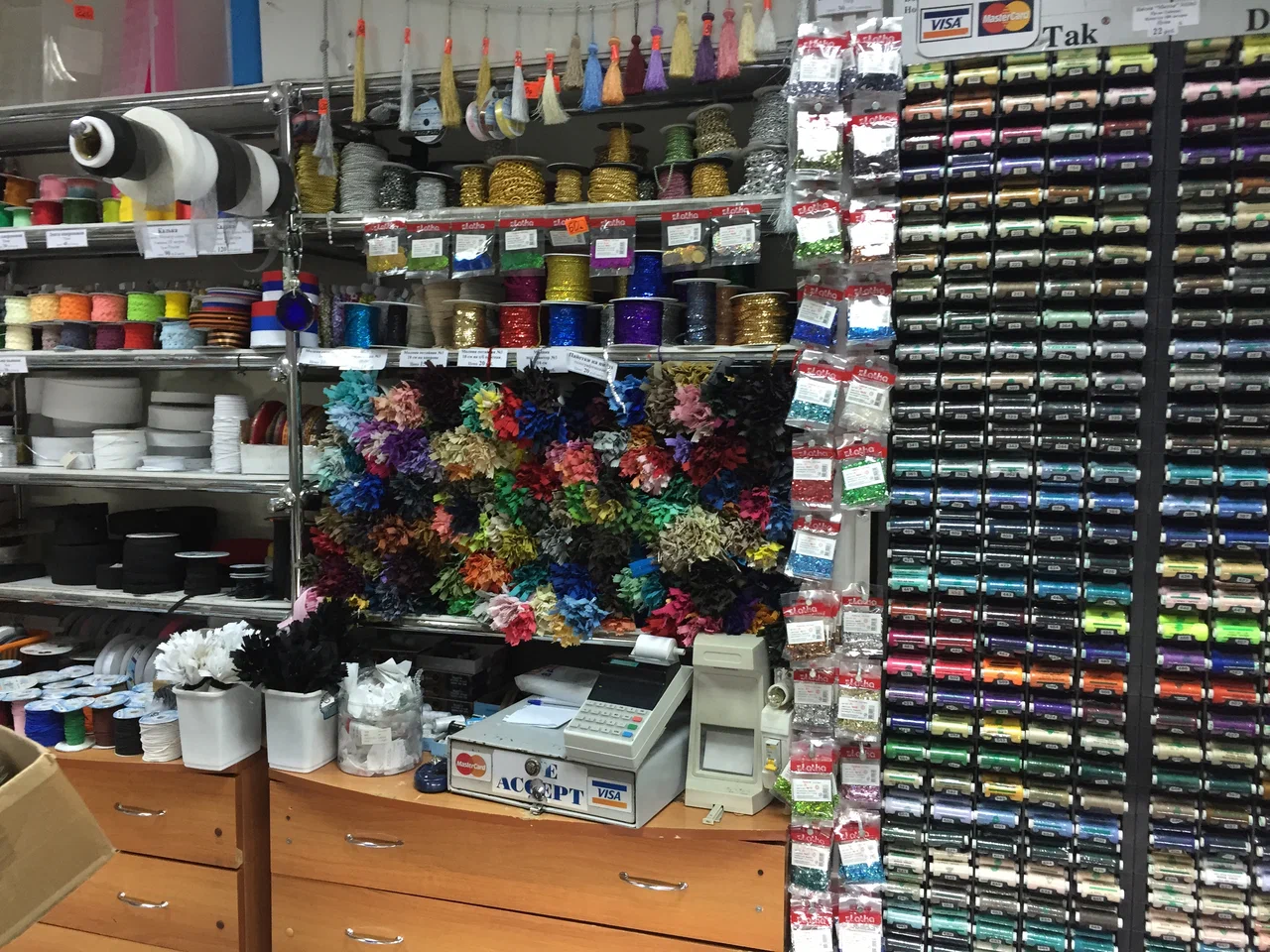 Достоинством фирмы является самый широкий ассортимент швейной фурнитуры в СНГ — более 20 тысяч видов товаров, более 90 тысяч наименований. К каждому сезону ассортимент пополняется новыми коллекциями пуговиц и фурнитуры, наборами для рукоделия, модными расцветками тканей, нитками, молниями, пряжей.